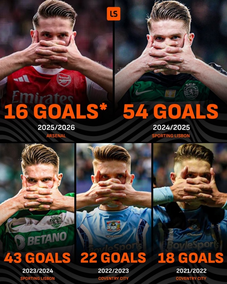 3月17日讯 加盟阿森纳之后,约克雷斯曾一度受到质疑,但瑞典前锋逐渐找到状态并展示出不错的进球效率。本赛季迄今为止,他已经在各项赛事打进16球。近5个赛季,约克雷斯均至少打进15球,场均进球数达到了0.72。